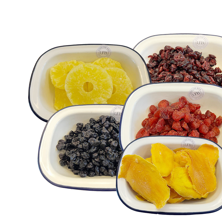 Buah Kering Kualitas Premium Impor. Strawberry Kering, Cranberry Kering, Blueberry Kering, Nanas Kering, Mangga Kering, Aprikot Kering, Longan Kering